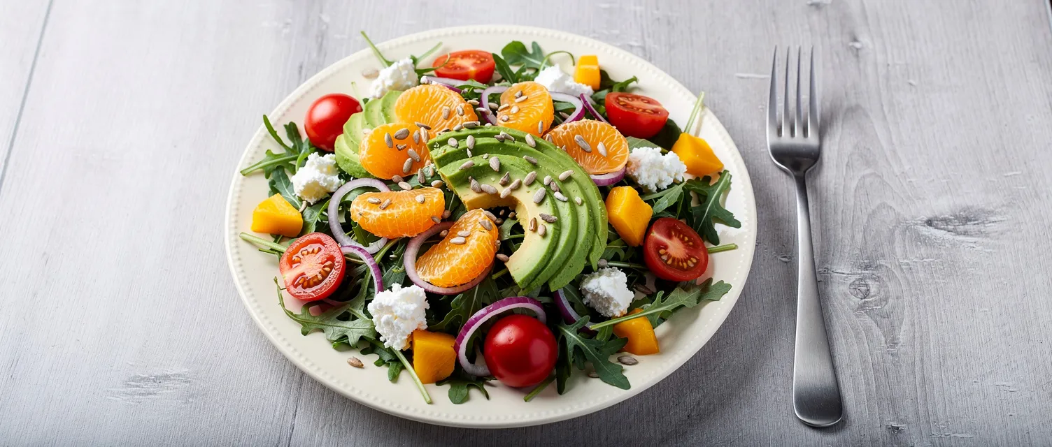 Dieser elegante und geschmackvolle Salat kombiniert würzigen Rucola mit saftigen Mandarinen, würzigem Ziegenkäse, knackigen Sonnenblumenkernen und süßer gelber Paprika. Perfekt für ein leichtes Mittagessen oder als Beilage.