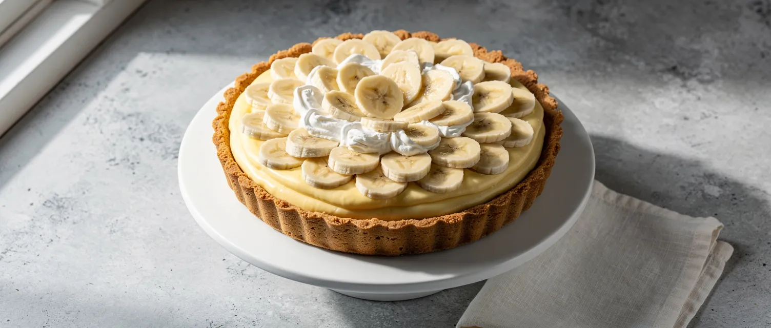 Dieser Bananen-Pudding-Kuchen ist ein einfaches Dessert, das ohne Backen auskommt. Mit cremigem Vanillepudding, frischen Bananen und einem fertigen Tortenboden ist er schnell zubereitet und perfekt für jede Gelegenheit.