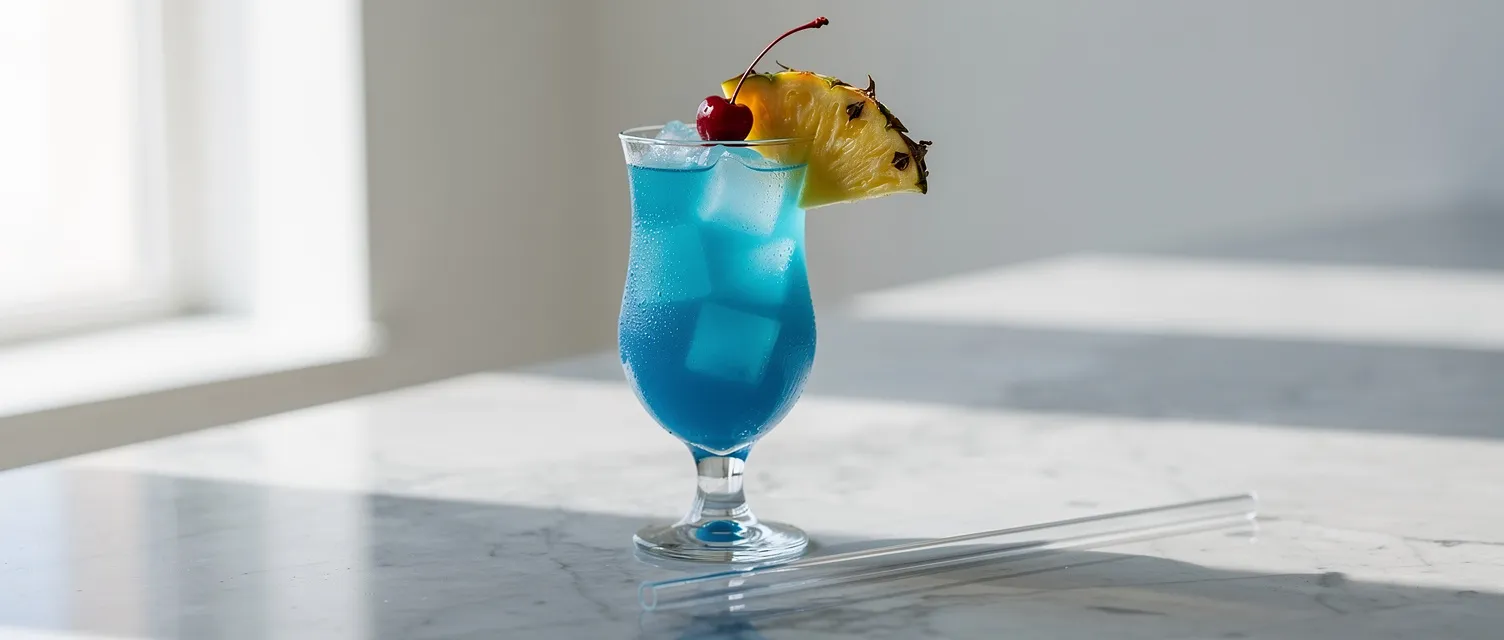 Der Blaue Hawaii ist ein klassischer Tiki-Cocktail, der mit Rum, Kokosnusscreme, Ananassaft und Blauem Curaçao zubereitet wird und ihm seine ikonische blaue Farbe verleiht.