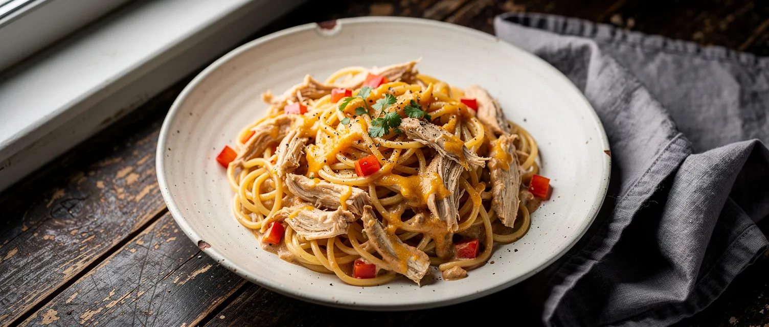 Cremige Hähnchen-Spaghetti auf mexikanische Art
