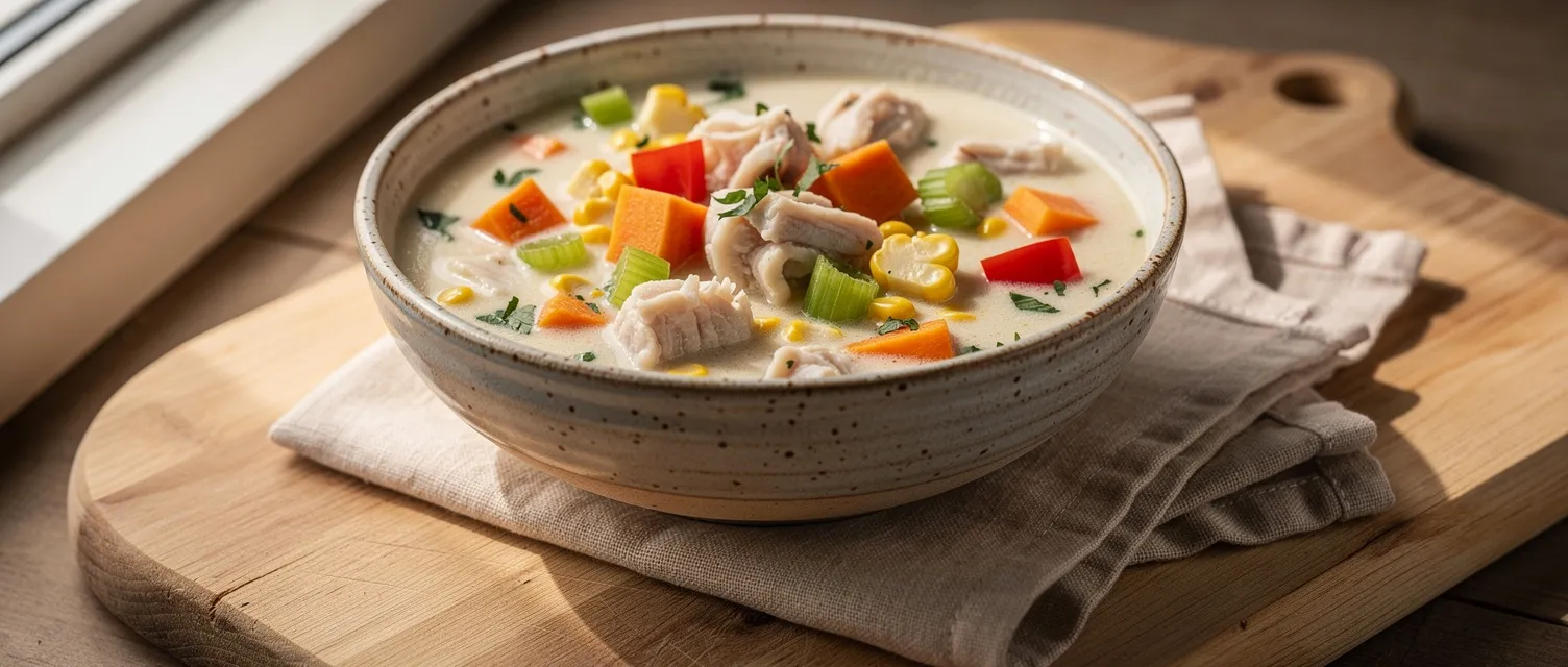 Schritt 4. Das gehackte Fechterschneckenfleisch und die Gemüse-Mischung in den Topf geben. Zum Kochen bringen, dann die Hitze reduzieren und die Suppe 15 Minuten köcheln lassen.