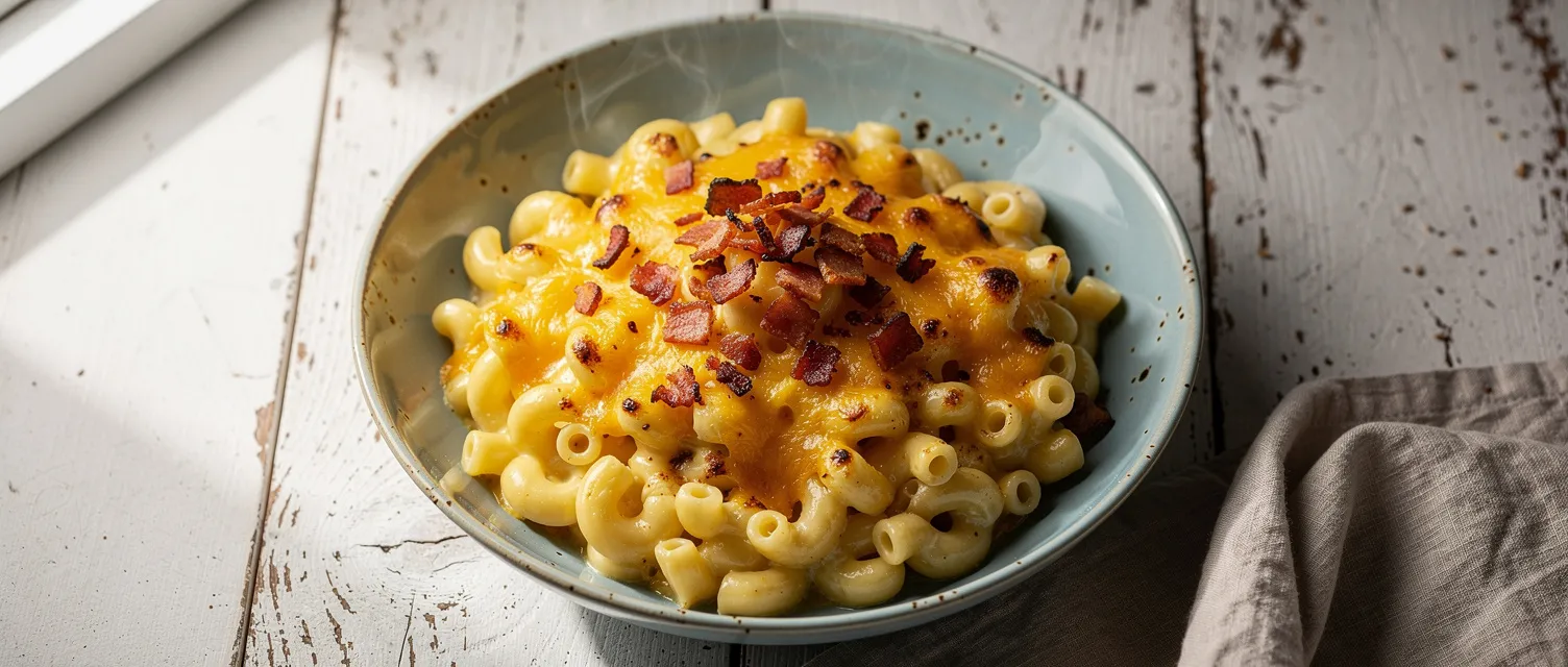 Dieses cremige Mac-and-Cheese mit Speck aus dem Schnellkochtopf ist unglaublich einfach zuzubereiten und eine köstliche Alternative zur Fertigpackung. Ein perfektes, herzhaftes Hauptgericht für die ganze Familie.