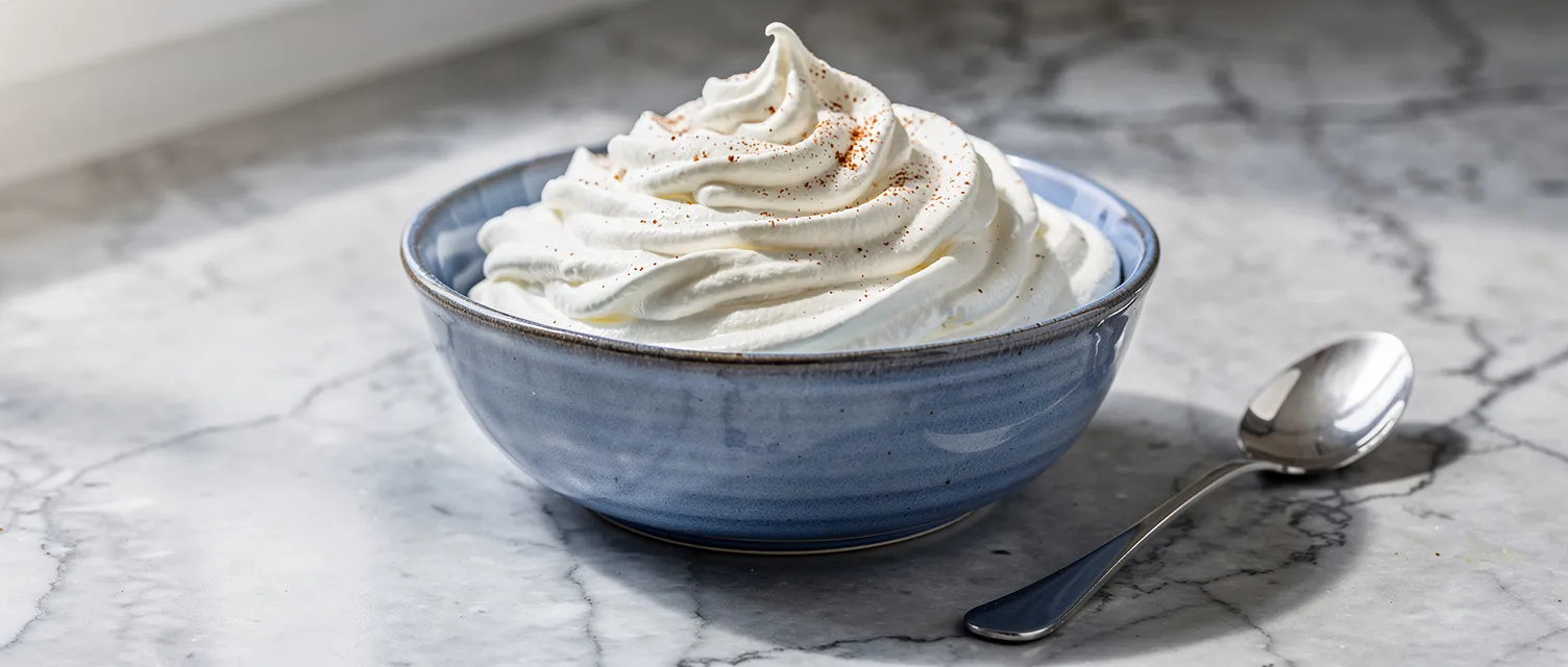 Diese Eierlikör-Schlagsahne mit Rum, Vanilleextrakt und Muskatnuss ist eine köstliche Beilage für Desserts, Getränke oder überall dort, wo Sie einen Hauch besonderen Geschmacks wünschen.