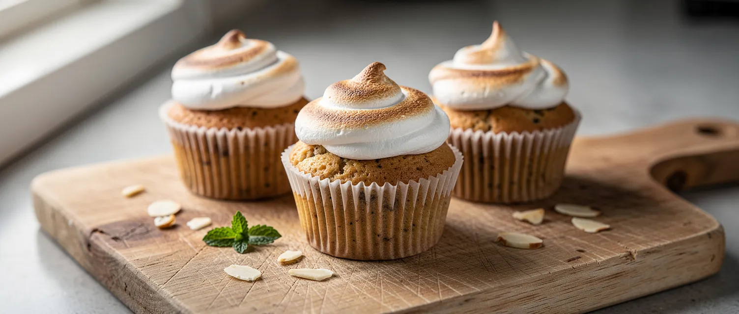 Verwöhnen Sie Ihre Freunde und Familie mit diesen köstlichen Erdnussbutter-Bananen-Cupcakes, die mit einer luftigen Marshmallow-Creme gekrönt sind. Ein süßer Genuss für jede Gelegenheit.