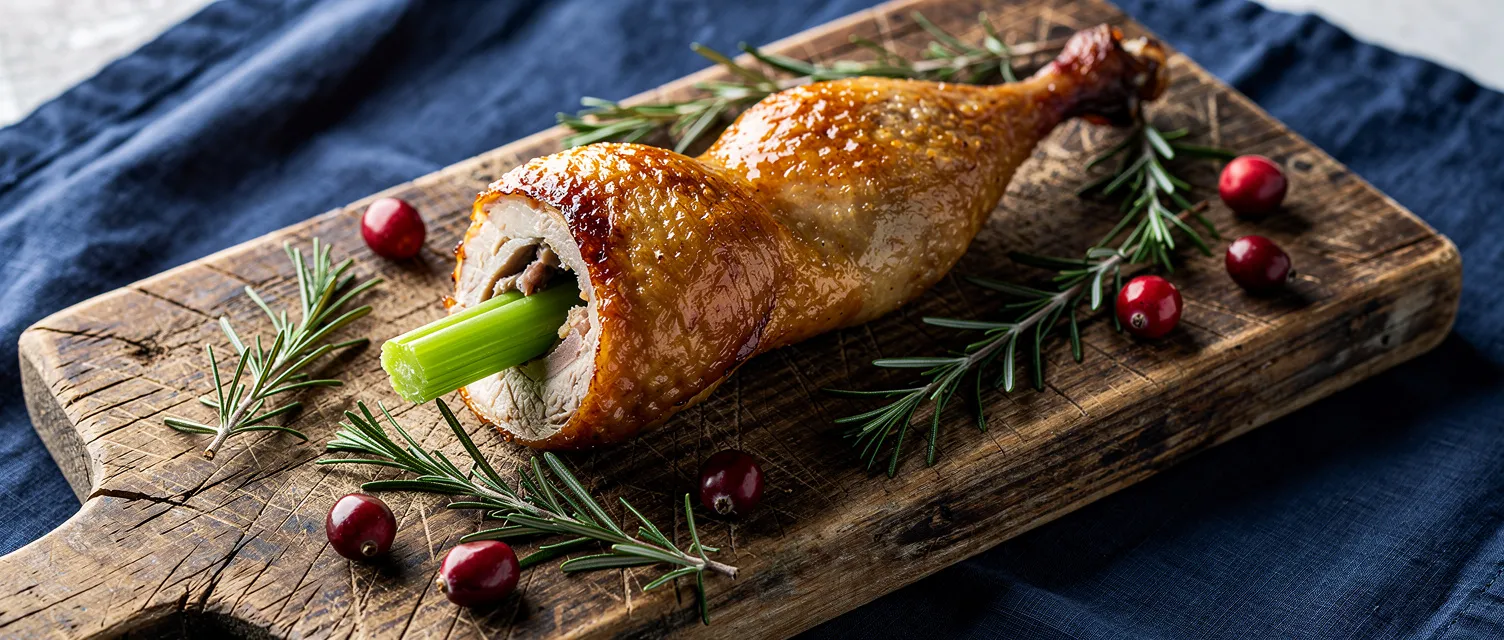 Diese perfekt gebratenen Putenkeulen sind zart und saftig mit herrlich knuspriger Haut. Ideal für ein kleines Thanksgiving-Dinner oder zu jeder Jahreszeit.