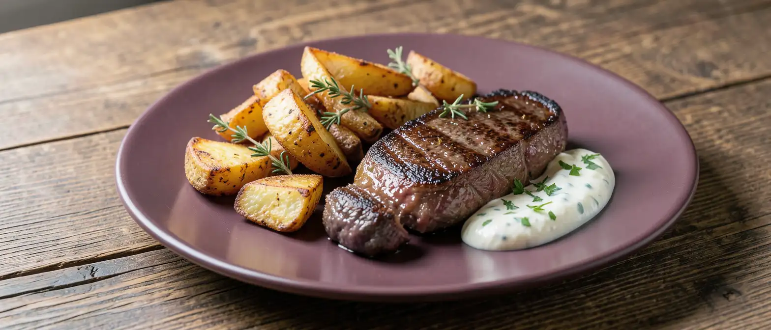 3.In einer beschichteten Pfanne die Steaks etwa 4 Min. pro Seite medium braten, danach würzen.