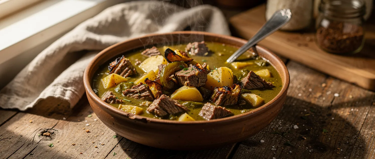Grüner Chili-Eintopf mit Rindfleisch und Kartoffeln