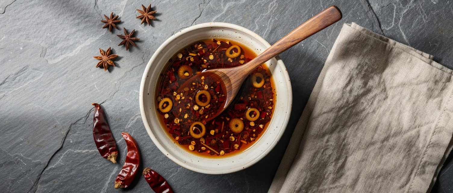 Dieses hausgemachte Chili-Crunch ist eine würzige Beilage, die mit knusprigen Schalotten, Knoblauch und Chiliflocken zubereitet wird. Perfekt, um jedem Gericht eine besondere Schärfe zu verleihen.