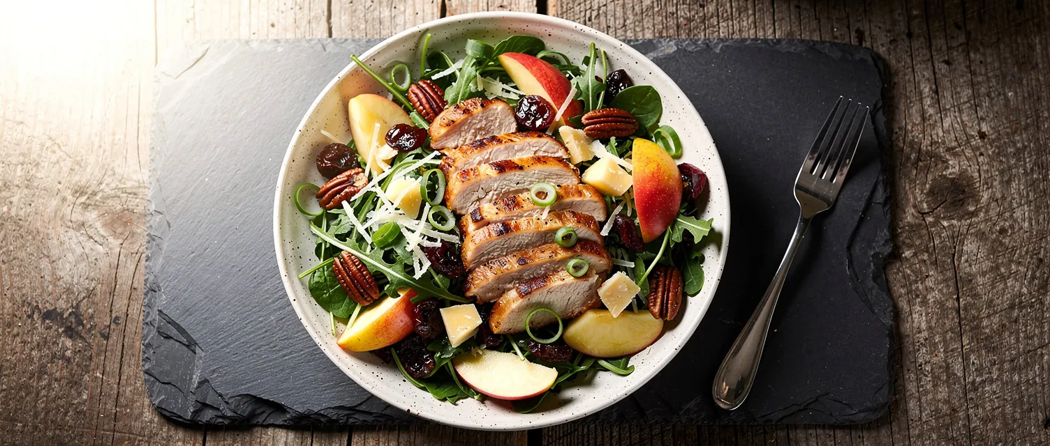 Dieser herbstliche Hähnchensalat kombiniert zartes Hähnchen mit knackigen Äpfeln, süßen Preiselbeeren und glasierten Pekannüssen. Ein perfektes Gericht für jede Jahreszeit, einfach und schnell zubereitet.