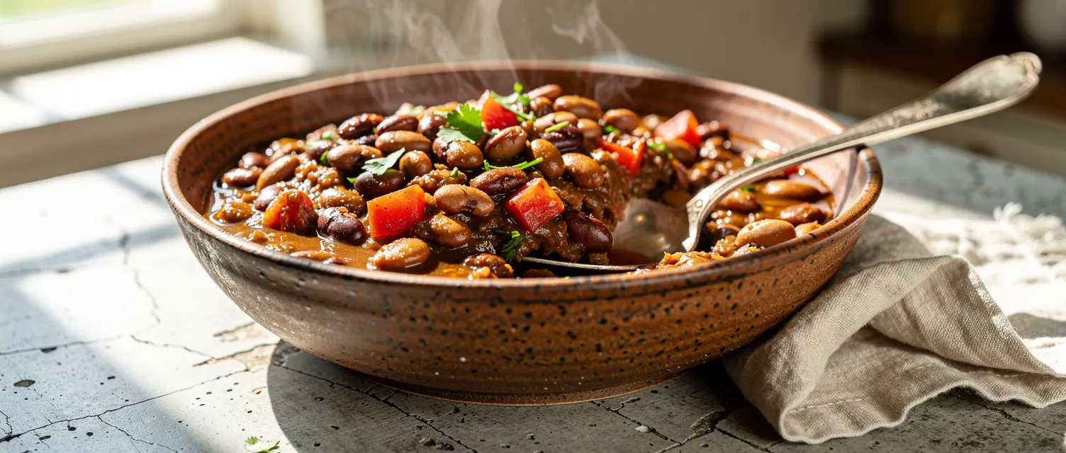 4. Die Bohnen mit einem Kartoffelstampfer leicht zerdrücken, um die Flüssigkeit anzudicken. Mit Salz und Pfeffer abschmecken und servieren.