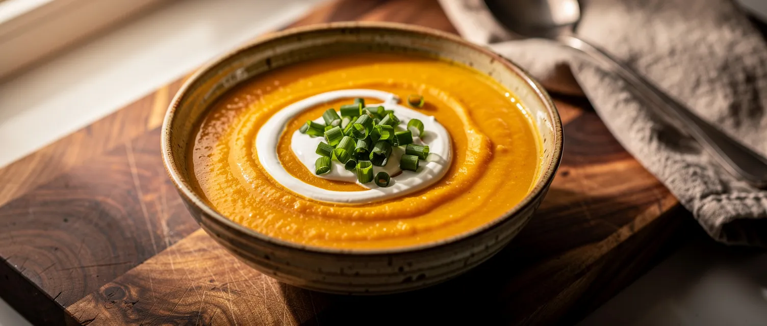 Diese wärmende Kürbis-Curry-Suppe kombiniert die komplexen Aromen von Curry mit saisonalem Butternut-Kürbis. Sie ist perfekt für festliche Anlässe oder kalte Tage.