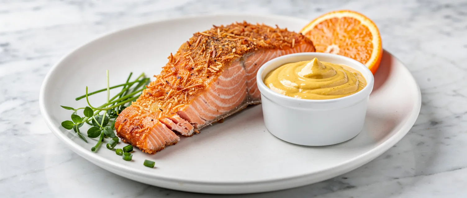 Entdecken Sie dieses köstliche Rezept für Lachs mit einer knusprigen Kokoskruste, mariniert in Orangensaft und serviert mit einem süß-pikanten Orangen-Senf-Dip. Eine aufregende Art, Lachs zuzubereiten, die Ihre Geschmacksknospen überraschen wird.