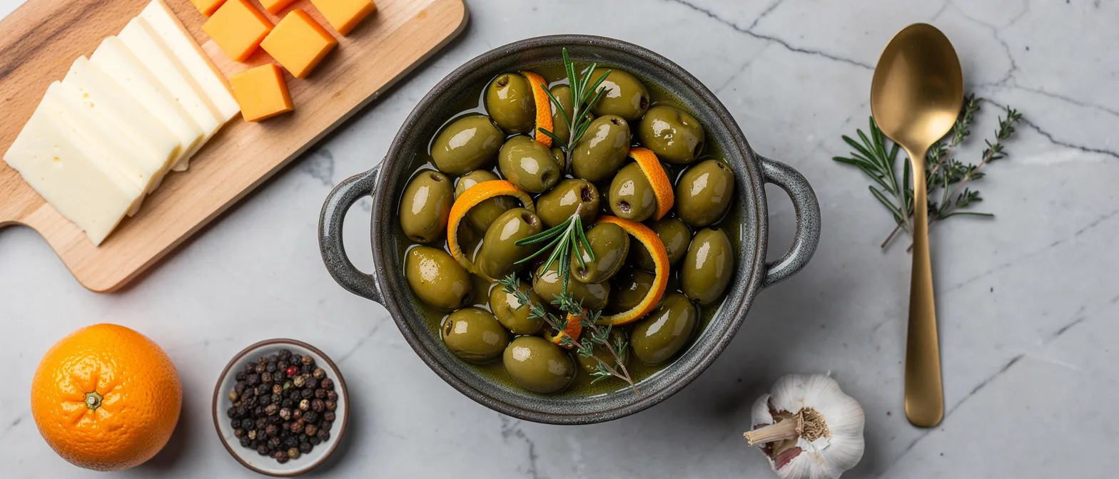 Dieses einfache Rezept für marinierte Oliven ist süß, leicht scharf und in wenigen Minuten zubereitet! Der perfekte preiswerte Snack oder die perfekte Vorspeise.