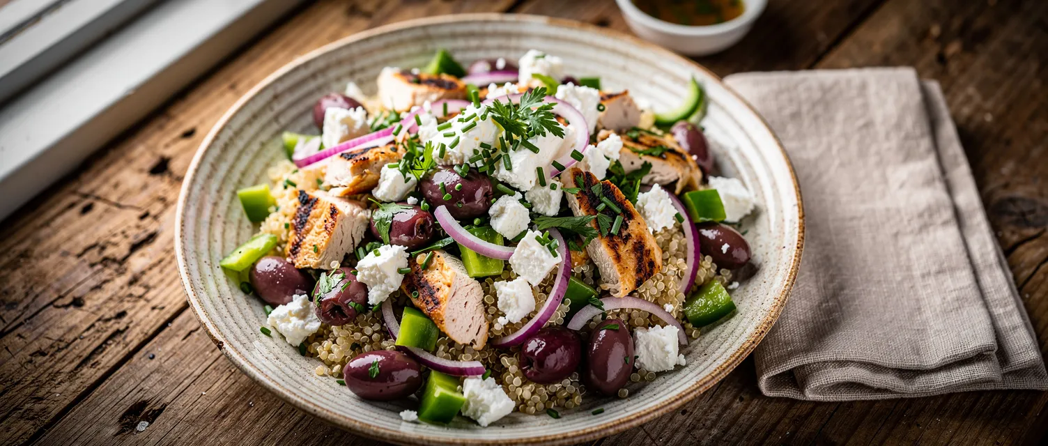 Mediterraner Quinoasalat mit Hähnchen und Feta