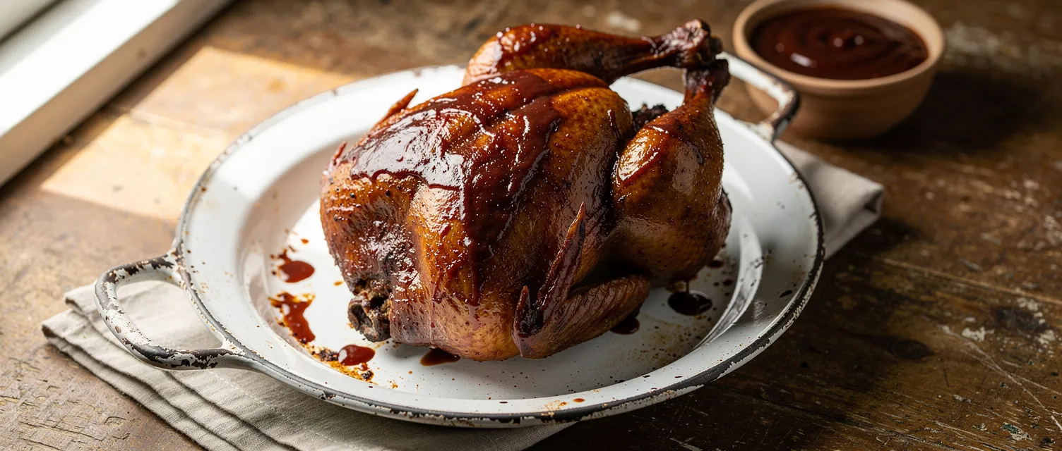 Dieses Rezept bietet eine köstliche Alternative zum Grillen im Freien: zartes Hähnchen, langsam im Ofen über Räucherholzchips gegart und mit einer hausgemachten Barbecue-Sauce bestrichen. Ein Fest für die Sinne mit intensivem Raucharoma und süß-würziger N
