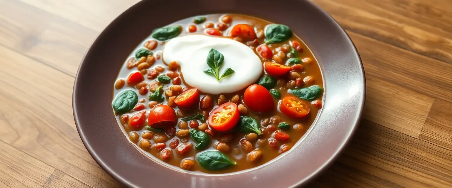 2.In einzelnen Suppenschalen anrichten, jeweils einen ordentlichen Klecks Joghurt daraufgeben und servieren.