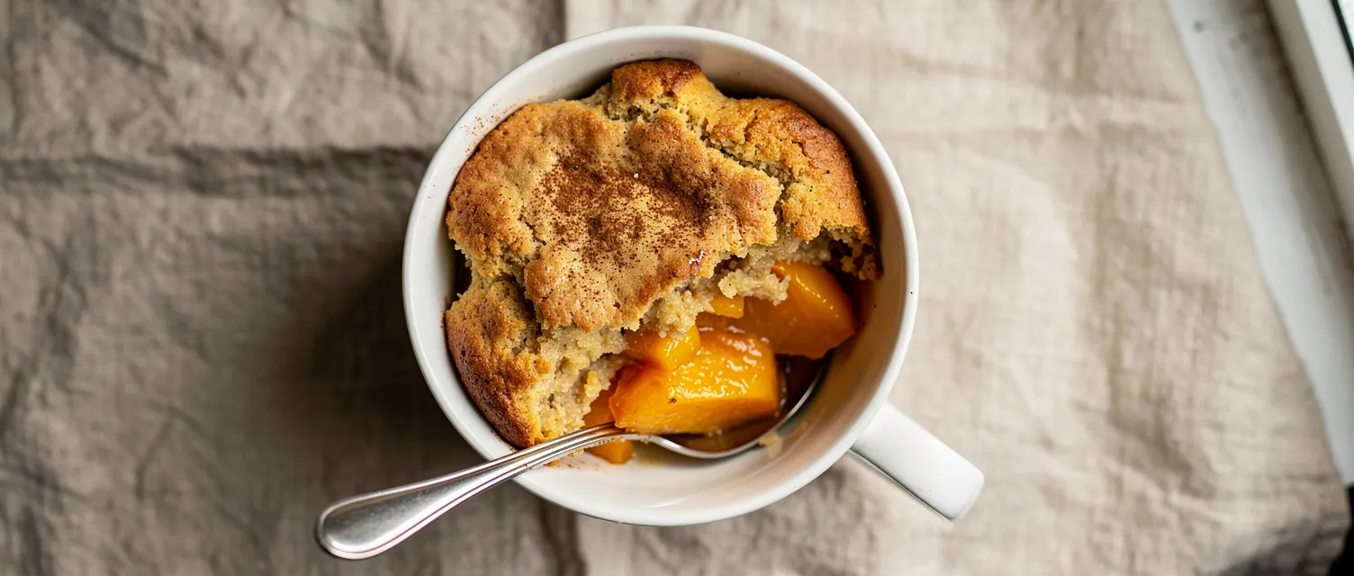 Dieser schnelle Pfirsich-Cobbler aus der Tasse ist perfekt für eine spontane Süßigkeit. Mit gewürfelten Pfirsichen, Zucker und Zimt ist er in weniger als 15 Minuten zubereitet.