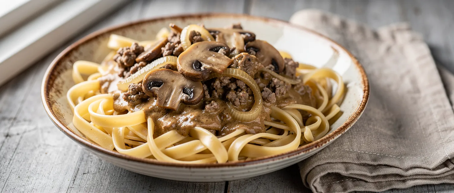 Dieses schnelle und einfache Rezept für Rindergulasch nach Stroganoff-Art verwendet Hackfleisch anstelle von Rinderstreifen und passt hervorragend zu Nudeln oder Kartoffelpüree. Perfekt für ein herzhaftes Abendessen.
