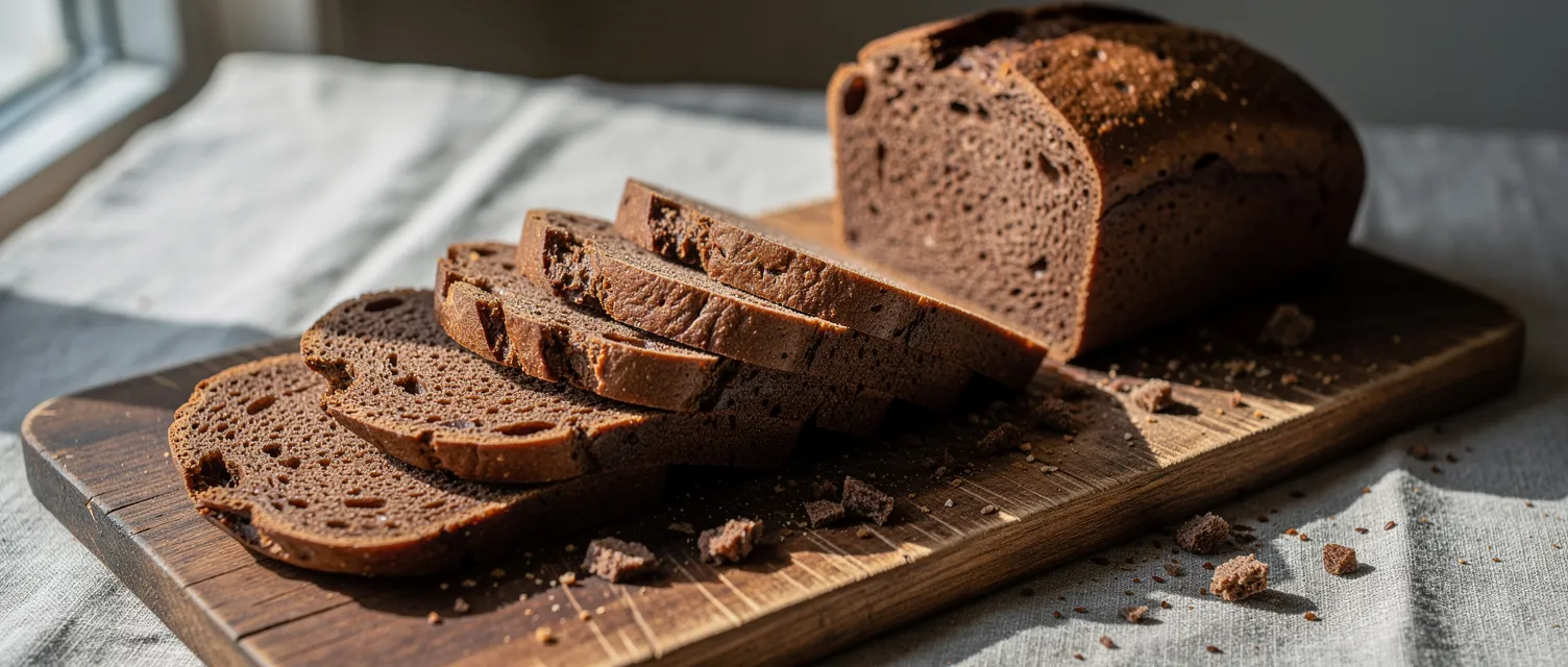 Entdecken Sie dieses authentische russische Schwarzbrot-Rezept, perfekt für den Brotbackautomaten. Der Apfelessig verleiht eine besondere Note, die hervorragend zu Käse passt.