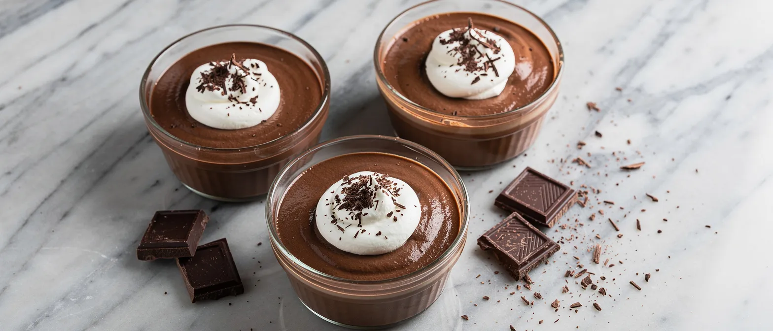 6. Die Mousse in Servierschalen füllen, abdecken und eine Stunde lang kühl stellen. Mit gesüßter Schlagsahne, Himbeeren, Minze oder Schokoladenraspeln garnieren.
