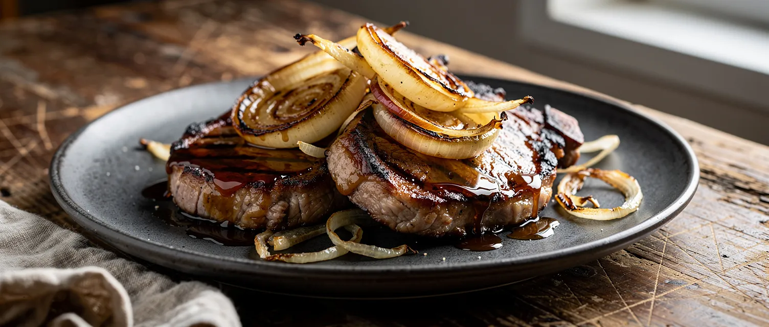 Genießen Sie zarte Schweinekoteletts mit einer süß-würzigen Honig-Soja-Glasur, perfekt gegrillt und serviert mit karamellisierten Zwiebelscheiben. Ein schnelles und einfaches Gericht für den Grillabend.
