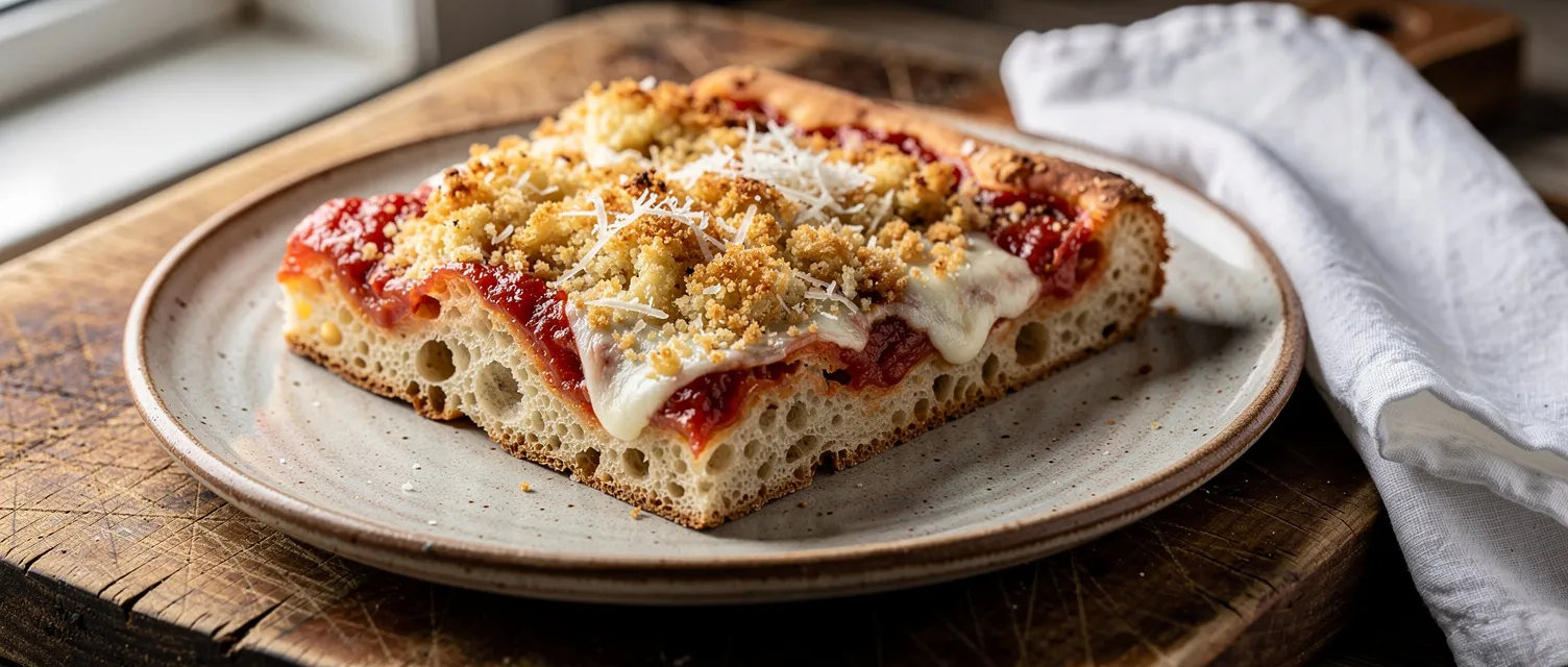 Entdecken Sie Sfincione, eine herzhafte sizilianische Weihnachtspizza mit einer würzigen Zwiebel-Sardellen-Sauce, einem luftigen Teig und einer knusprigen Semmelbröseldecke. Perfekt für ein festliches Mahl oder einen besonderen Anlass.