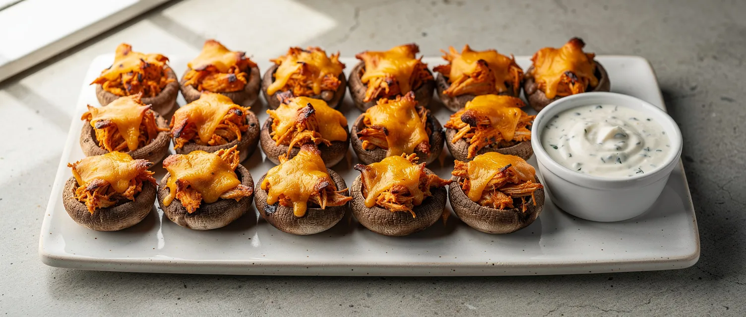 Entdecken Sie dieses köstliche Rezept für überbackene Champignons, gefüllt mit einer würzigen Hähnchen-Buffalo-Mischung und Käse. Perfekt als kohlenhydratarmer Snack oder Vorspeise für jede Party.