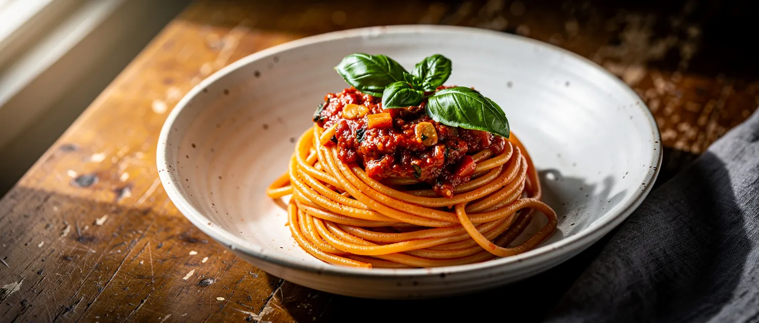 Bereiten Sie eine köstliche, hausgemachte vegane Pasta-Soße mit frischen Tomaten und einer Vielzahl von Gemüsesorten und Gewürzen zu. Dieses Rezept ist perfekt für Liebhaber der italienischen Küche und bietet einen reichen, vollmundigen Geschmack.