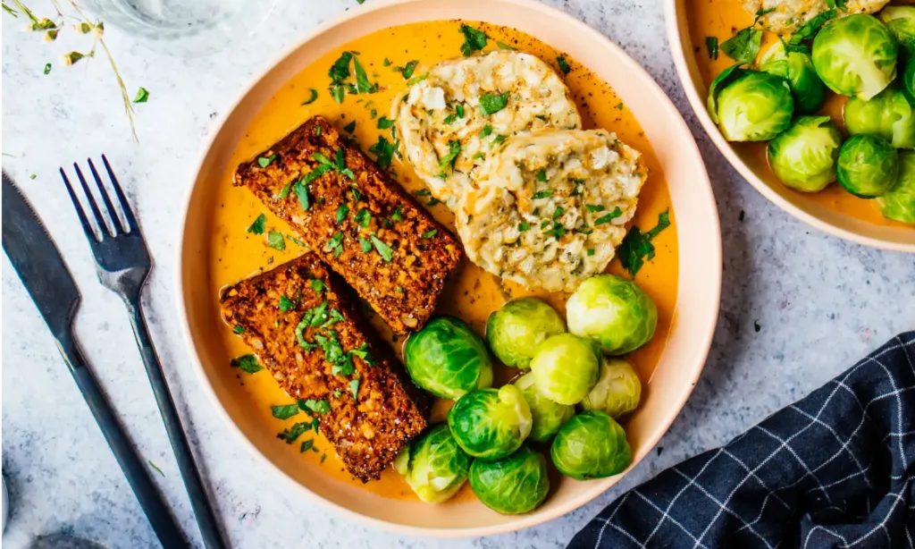 Veganer Nussbraten mit Zwiebel-Sahne-Soße
