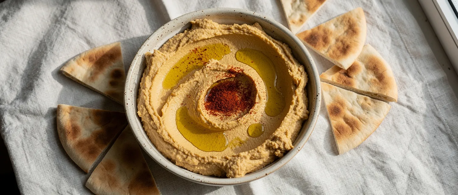 Ein cremiger und würziger Hummus mit drei verschiedenen Paprikasorten, perfekt als Vorspeise oder Snack. Dieses Rezept ergibt eine große Menge, ideal für Familien oder Partys.