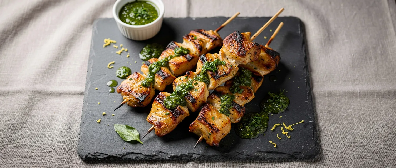Zitronen-Knoblauch-Hähnchenspieße mit Buttersoße